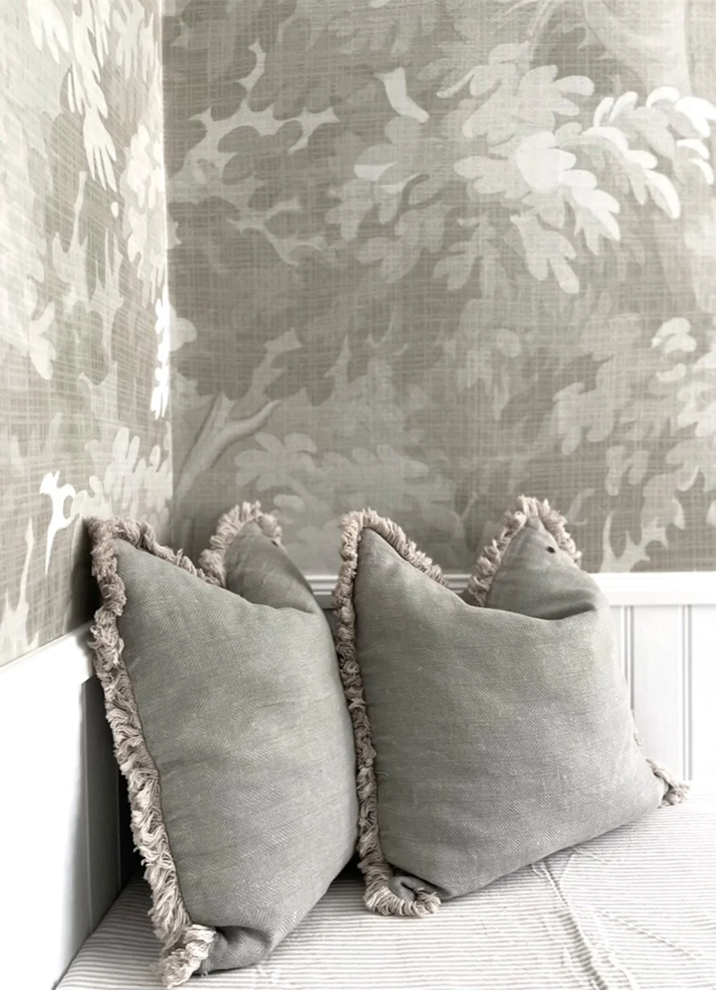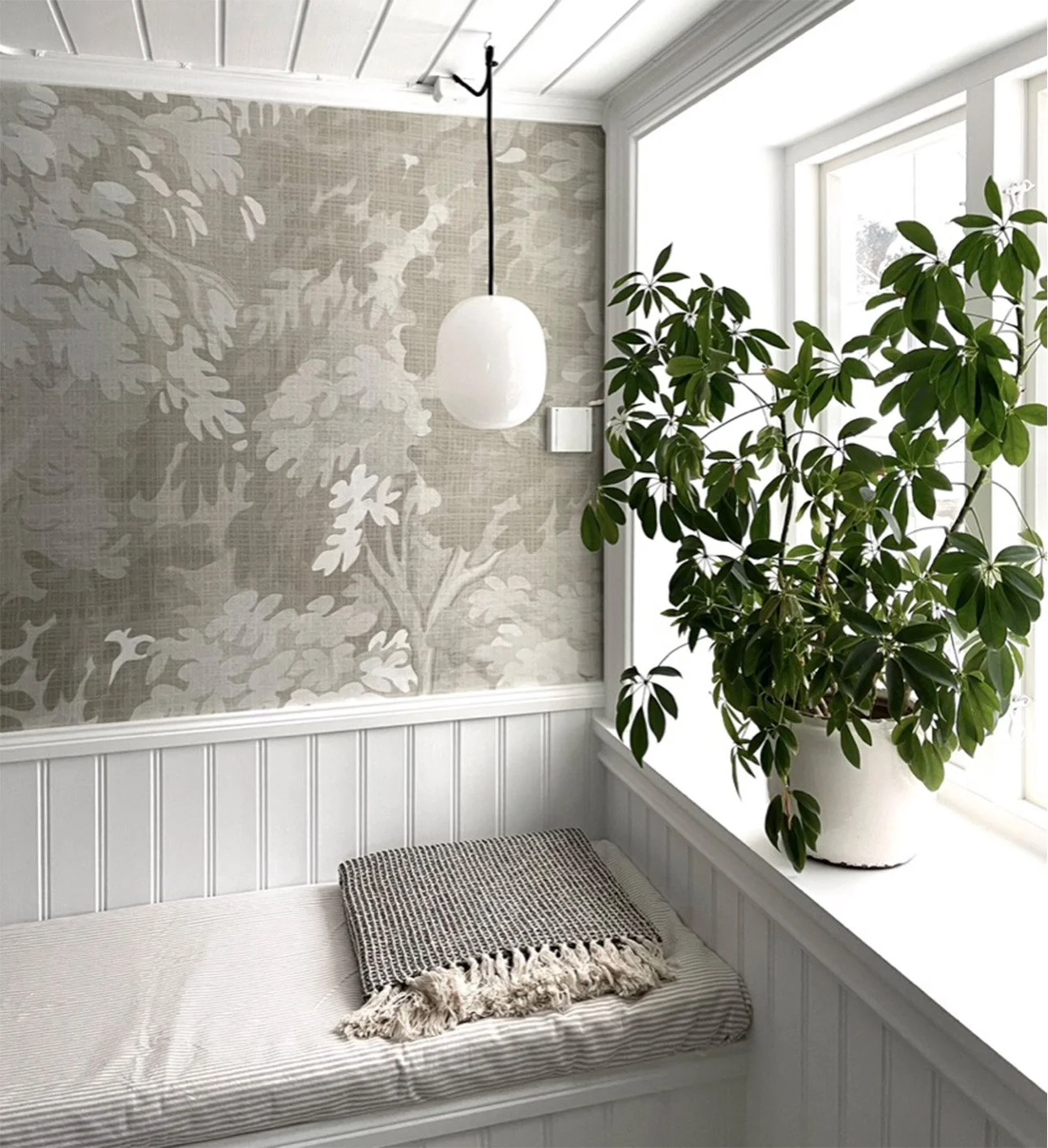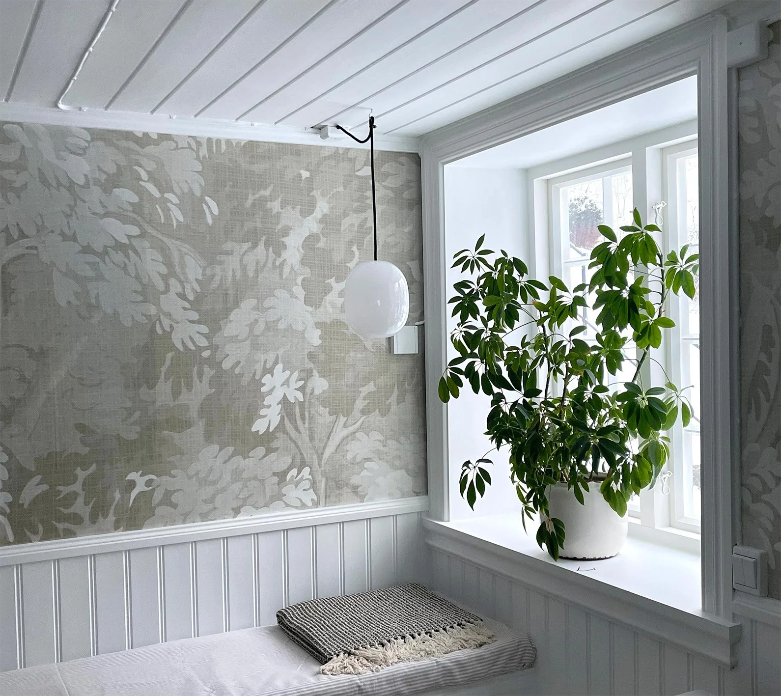 Det sies at klær skaper folk, jeg vil hevde at tapet skaper rom! Tapeter transformerer rom fullstendig, og fra å ha vegger som ikke gir deg noe som helst, kan du få vegger som er uttrykksfulle, vakre og forførende. I en urolig tid er det fint å skape skape visuelle inntrykk og illusjoner som gir ro, harmoni og som vekker tanker om bølgende landskap, hav, edelløvskog og duft av skog. Til huset vårt i Kilsund har jeg valgt tapet fra den siste kolleksjonen, “Dream Weave,” men jeg har også prototypen på Zen Flow på loftsgangen. Zen Flow og Zen Flow Light finner du i den første kolleksjonen, “Celestial North” A selection of wallpaper from the latest collection, Dream Weave, and also the prototype for the ever so popular Zen Flow.